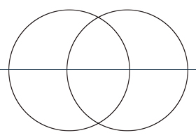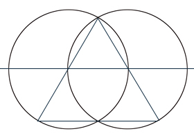 Here we see a horizon drawn through the centers of both circles. As above, so below. This division yields the intersecting points seen above. When these points are connected, they result in an equilateral triangle. This page is currently under construction, and will continue to be developed. |